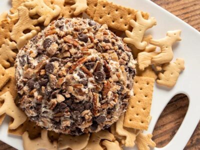 Step 5 –Place the cream cheese mixture on plastic wrap and cover, then gently press on the plastic wrap to shape the mixture into a ball.