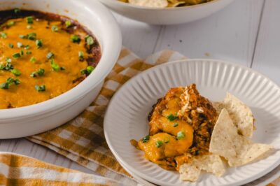 Top the dip with the green onions.